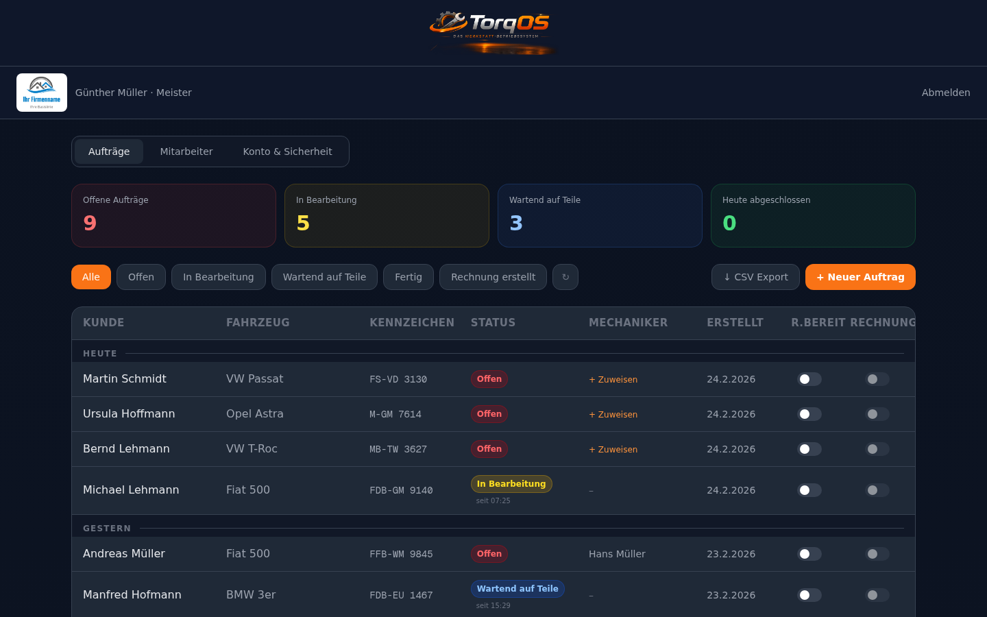 TorqOS digitalisiert deine Werkstatt – von der Auftragserfassung bis zur Rechnung. Schnell, sicher und ohne IT-Kenntnisse.